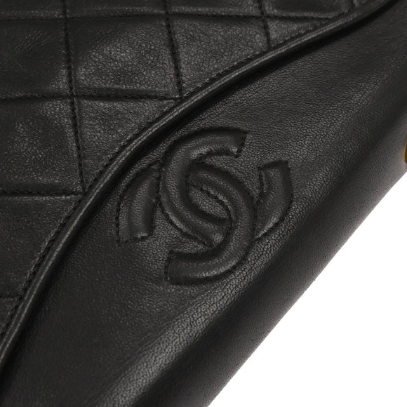 Chanel 1989-1991 Black Lambskin Full Flap Shoulder Bag