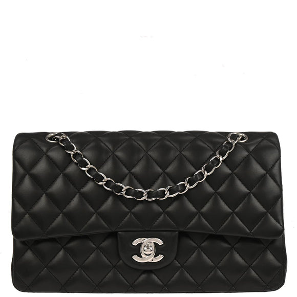Chanel 2013-2014 Black Lambskin Medium Classic Double Flap Shoulder Bag