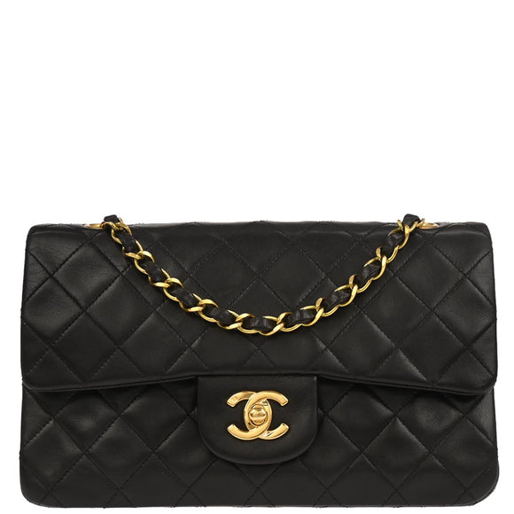 Chanel 1994-1996 Black Lambskin Small Classic Double Flap Shoulder Bag