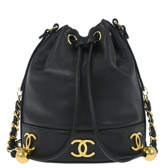 Chanel Black Lambskin Triple CC Drawstring Shoulder Bag