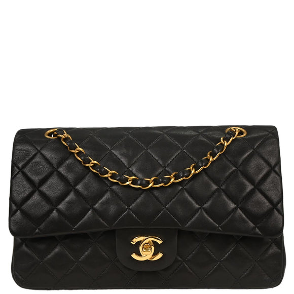 Chanel 1994-1996 Black Lambskin Medium Classic Double Flap Shoulder Bag