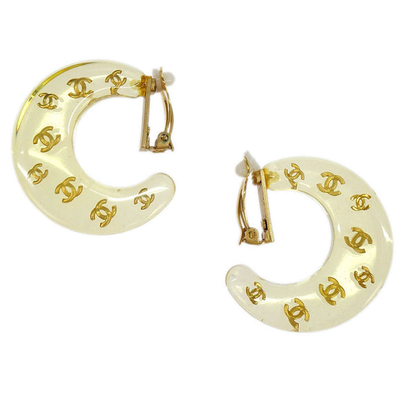 Chanel Hoop Crescent Moon Earrings Clip-On Gold 01P