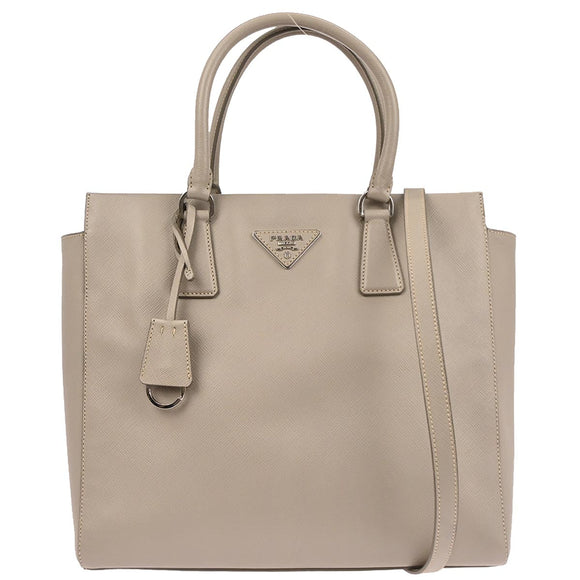 Prada Gray Leather 2way Shoulder Tote Handbag