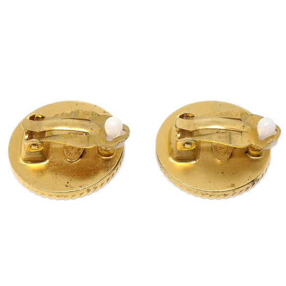 Chanel Costume Pearl Button Clip-On Earrings Gold 95A