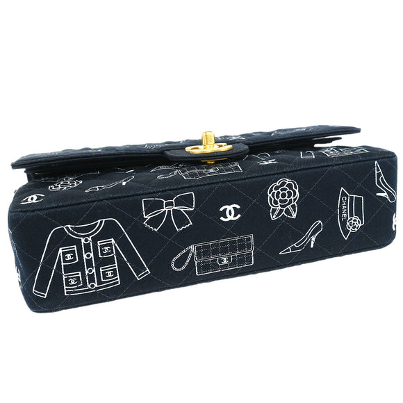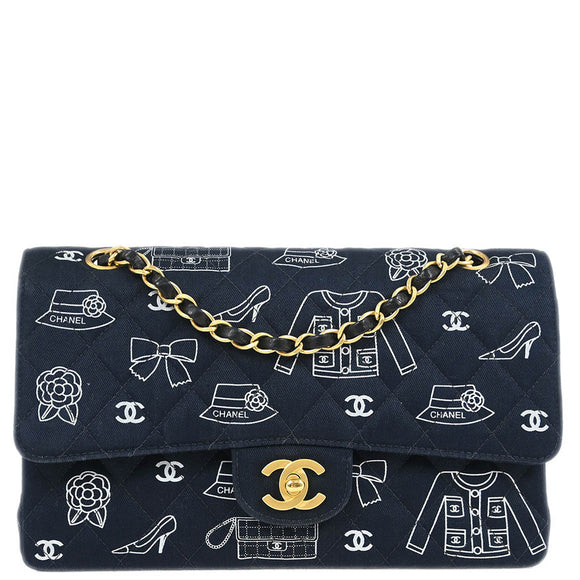Chanel Navy Canvas Icon Medium Classic Double Flap Shoulder Bag