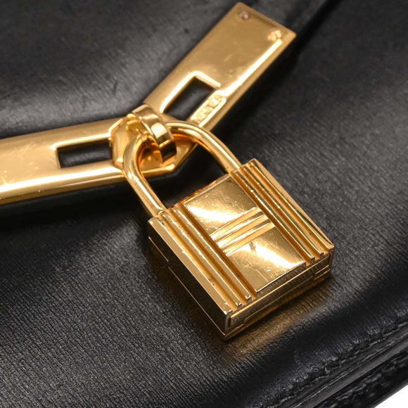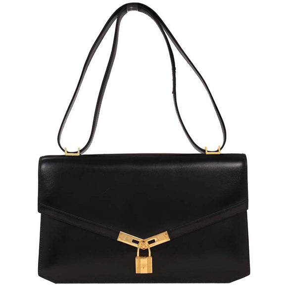 Hermes Black Box Calf Cadena Lock Shoulder Bag