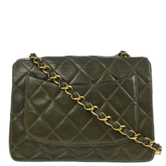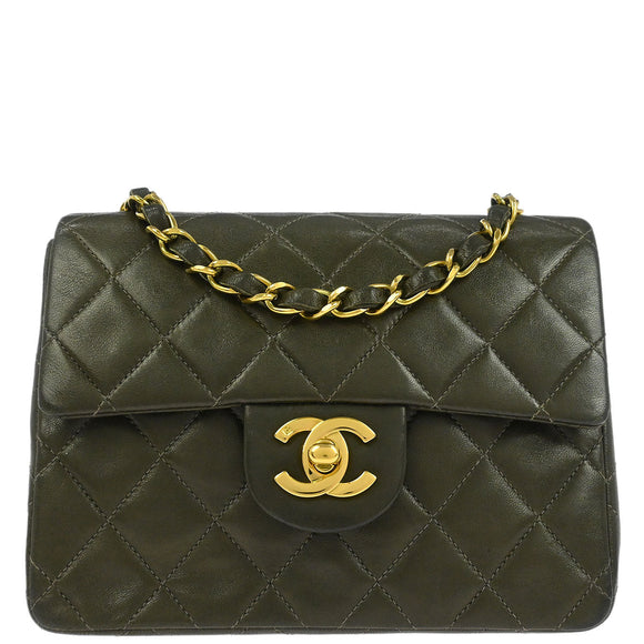 Chanel 1991-1994 Dark Green Lambskin Mini Classic Square Flap Shoulder Bag 17