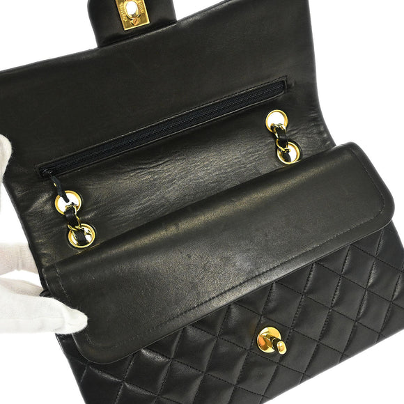 Chanel Black Lambskin Medium Classic Double Flap Shoulder Bag