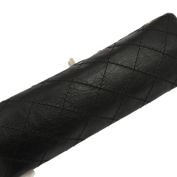 Chanel Black Calfskin Icon 2.55 Medium Classic Double Flap Shoulder Bag