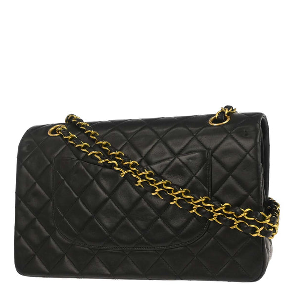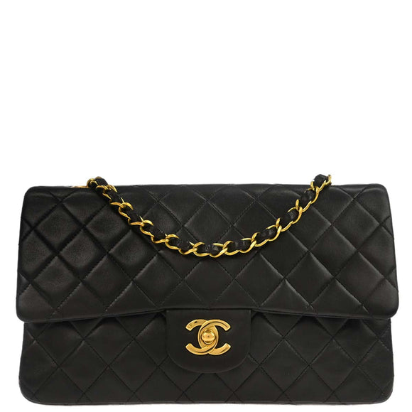 Chanel 1994-1996 Black Lambskin Medium Classic Double Flap Shoulder Bag