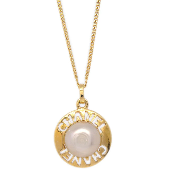 Chanel Artificial Pearl Gold Chain Pendant Necklace