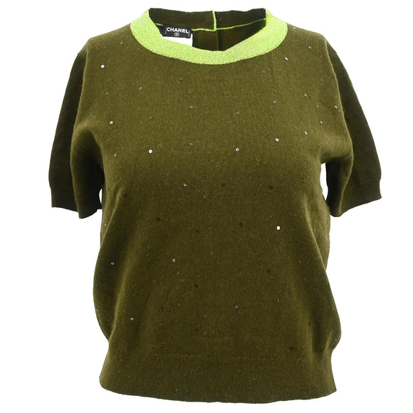 Chanel 1996 Short Sleeve Cashmere Sweater Khaki #44