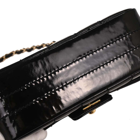Chanel 2002-2003 Black Patent Leather Choco Bar Single Flap Shoulder Bag