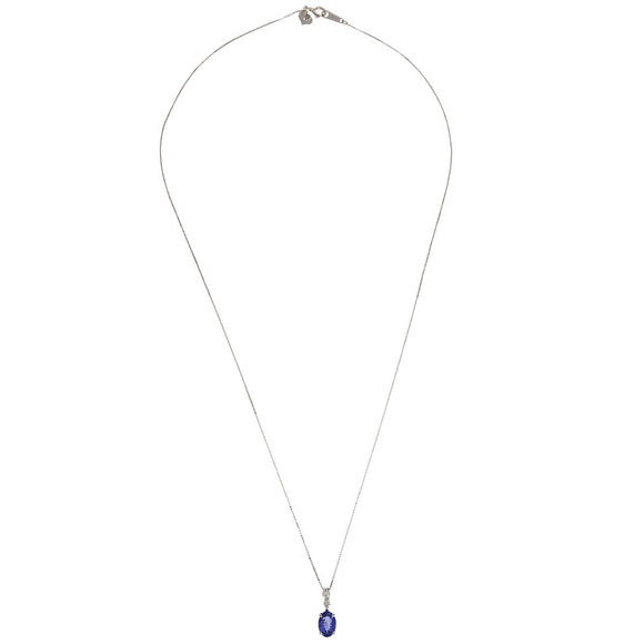Pendant Necklace 18KWG Sapphire Diamond Silver