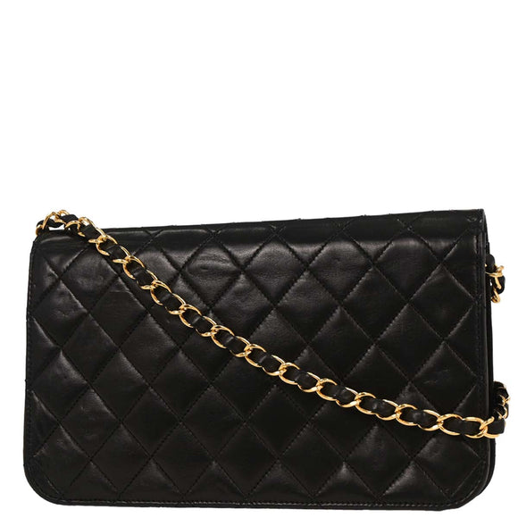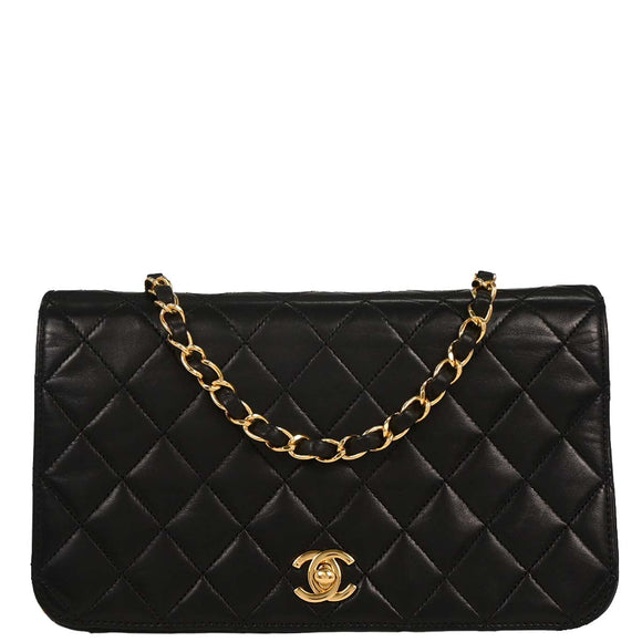 Chanel Black Lambskin Turnlock Small Full Flap Shoulder Bag
