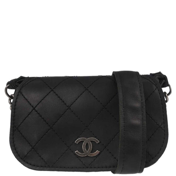 Chanel Black Calfskin Paris-Edinburgh Highlander Messenger Bag