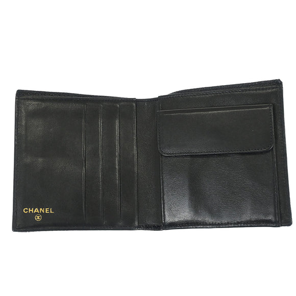 Chanel 1997-1999 Black Caviar Skin Bifold Wallet Purse