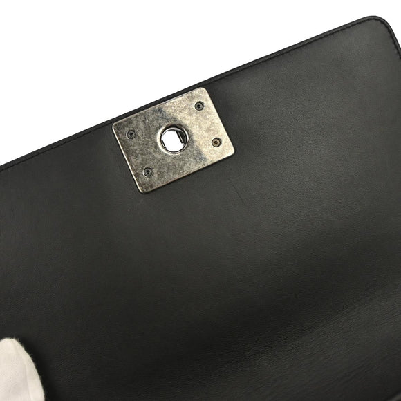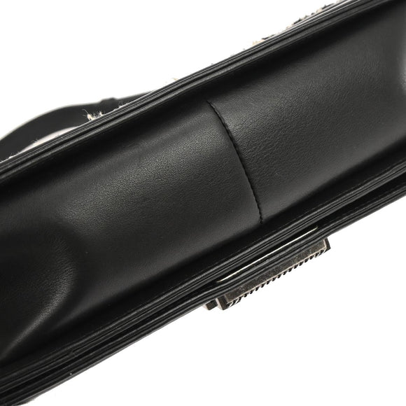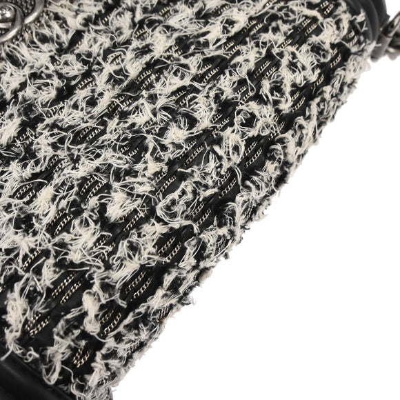 Boy Chanel Black Tweed Lambskin Medium Double Chain Shoulder Bag