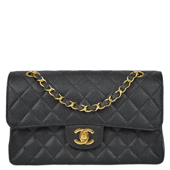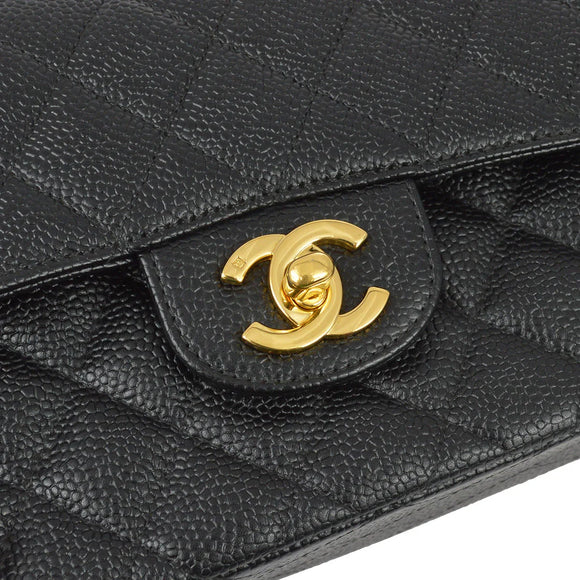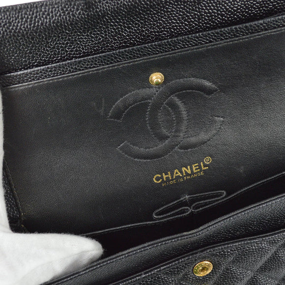 Chanel 2000-2001 Black Caviar Small Classic Double Flap Shoulder Bag