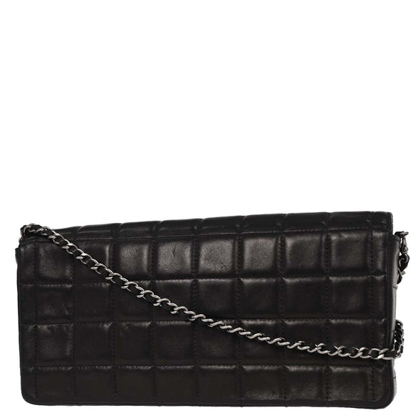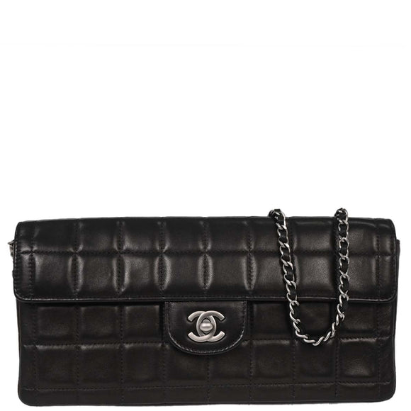 Chanel Black Lambskin East West Choco Bar Shoulder Bag