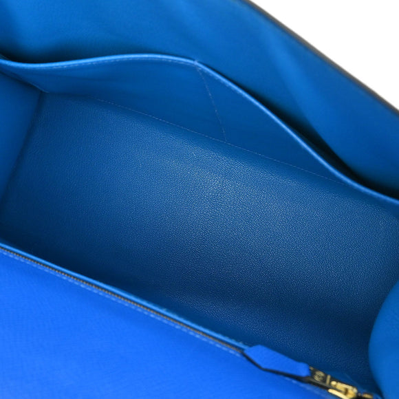 Hermes 1997 Blue Courchevel Kelly 32 Sellier Handbag