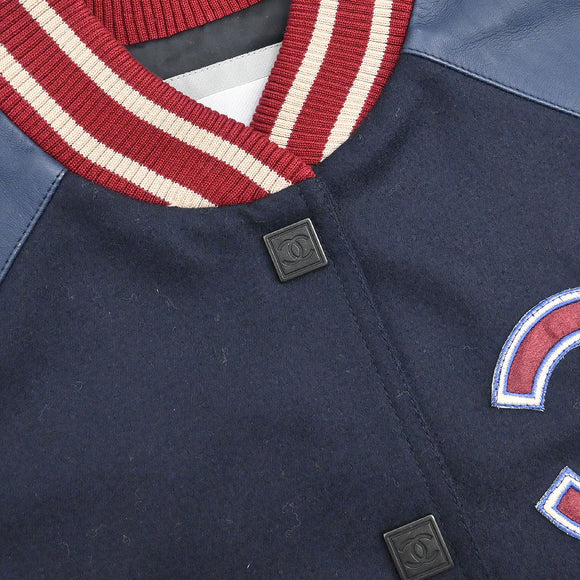 Chanel 2004 Sport Line Spring Letterman Bomber Jacket Navy #38
