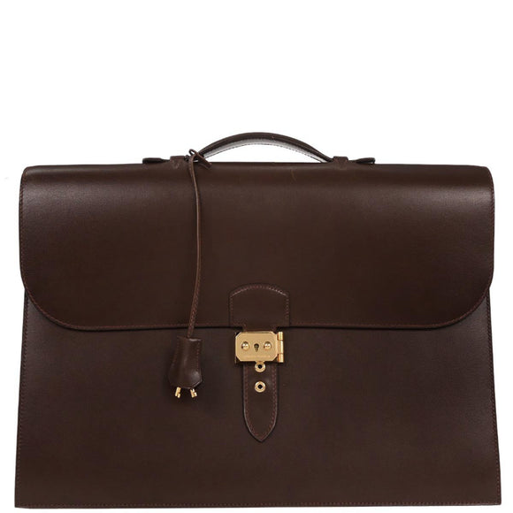 Hermes Havane Box Calf Sac a Depeches 38 Handbag