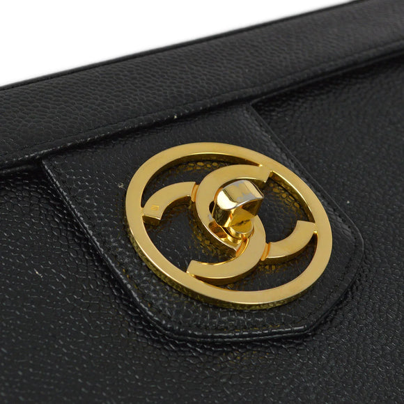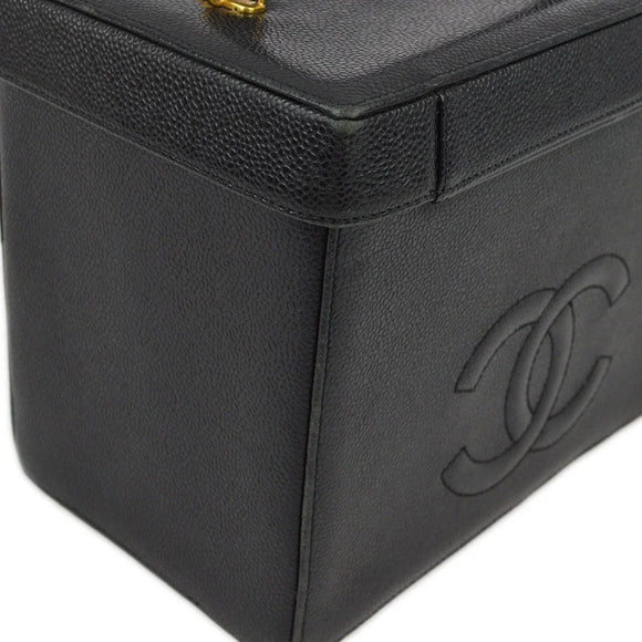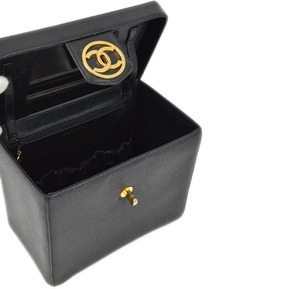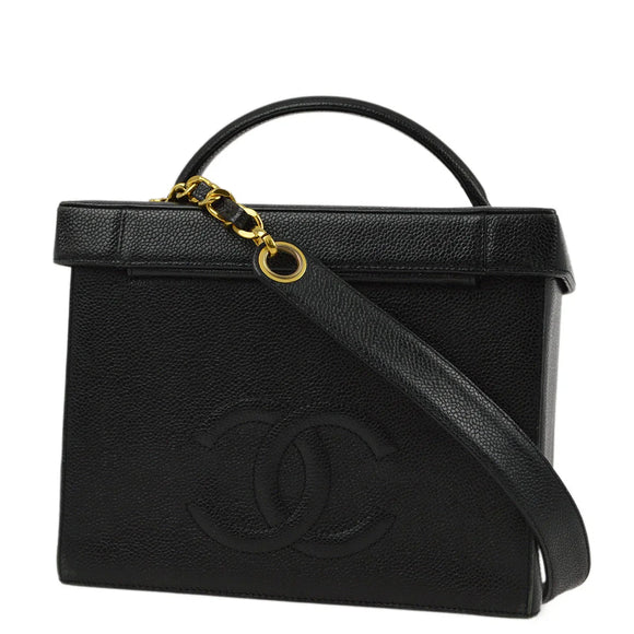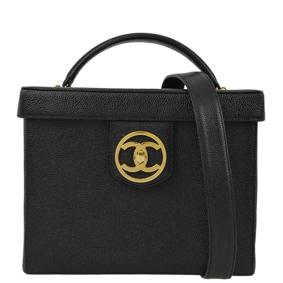 Chanel 1994-1996 Black Caviar Vanity 2way Shoulder Handbag