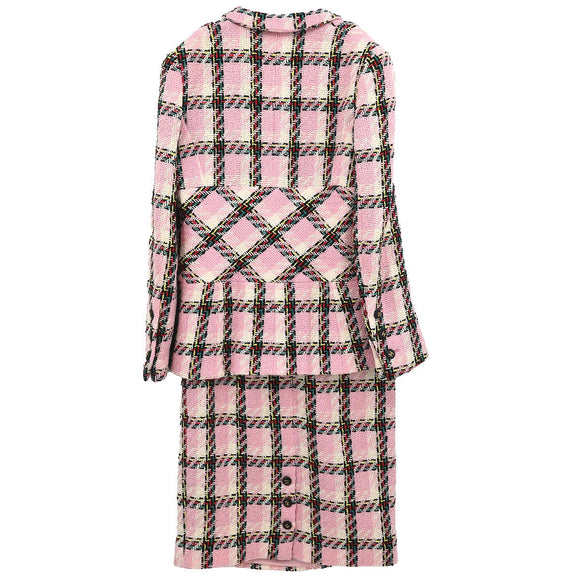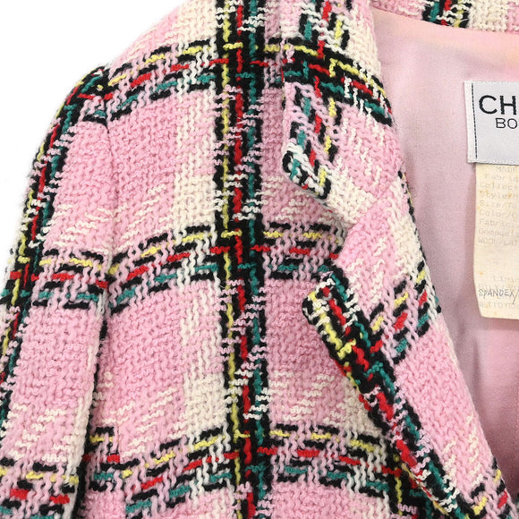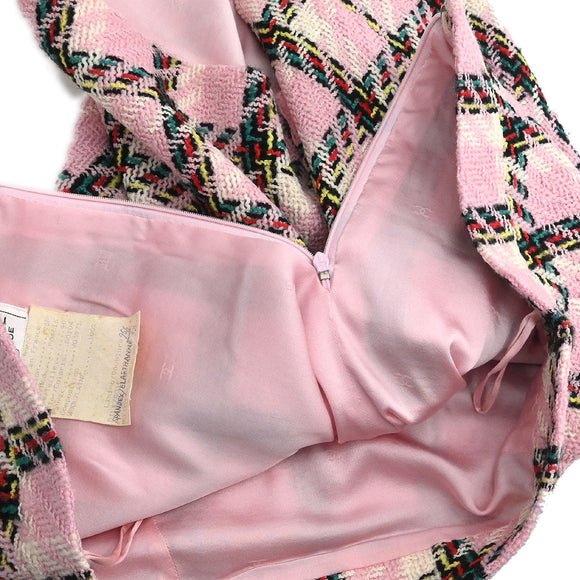 Chanel 1995 Setup Suit Jacket Skirt Tweed Pink #40