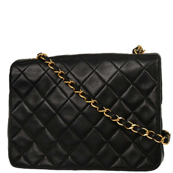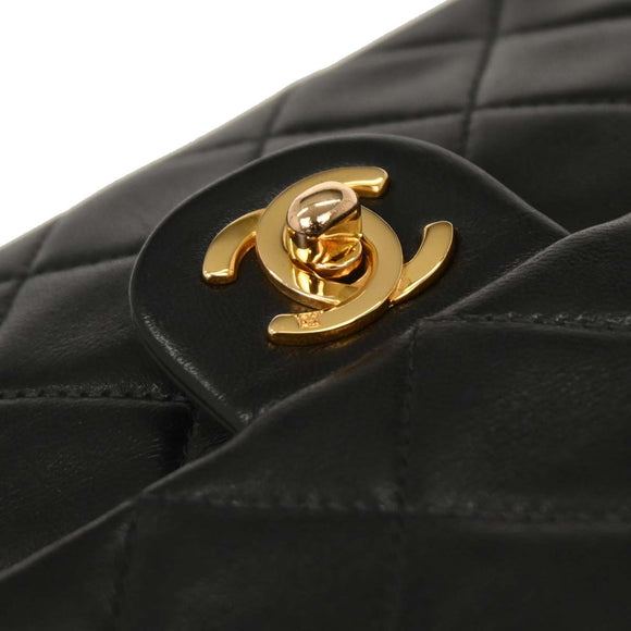 Chanel Black Lambskin Classic Square Flap Shoulder Bag