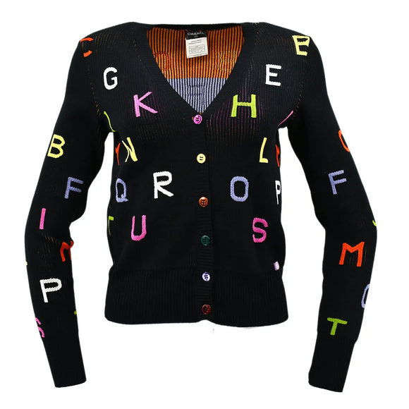 Chanel Alphabet Pattern Cardigan Black 01A #36