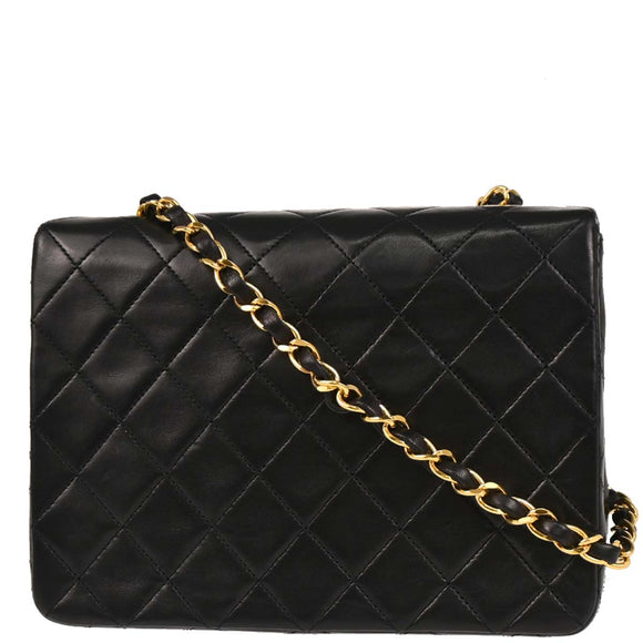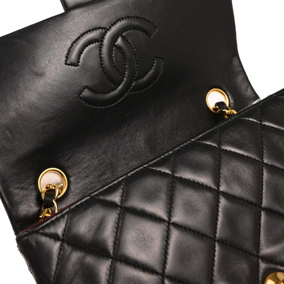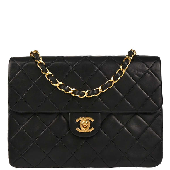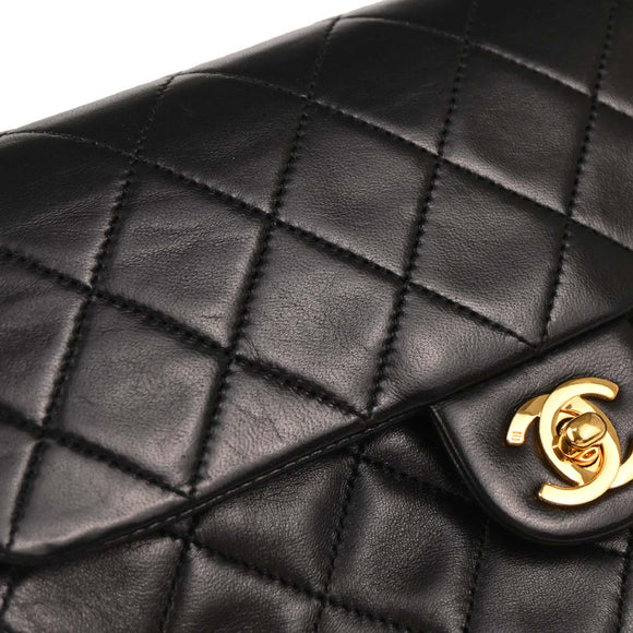 Chanel 1989-1991 Black Lambskin Classic Square Flap Shoulder Bag