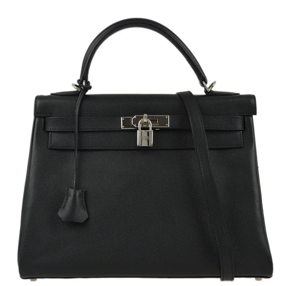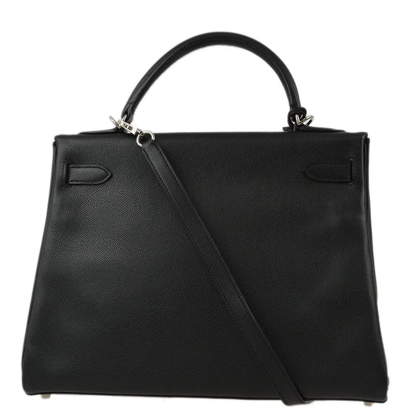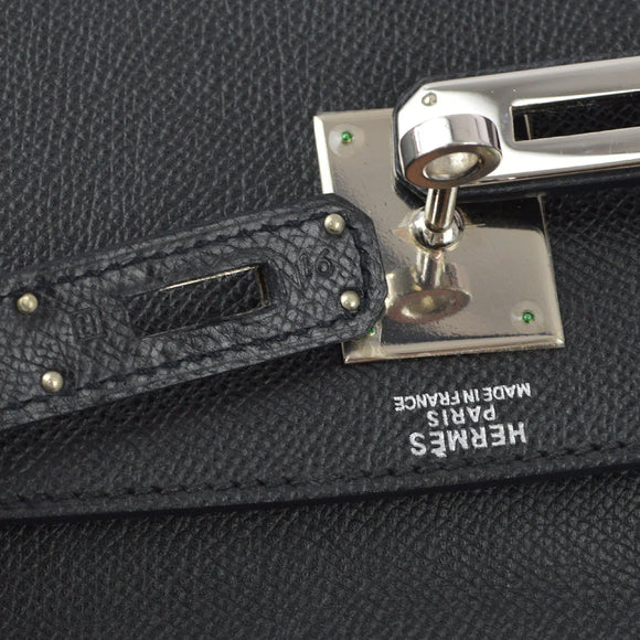 Hermes 2004 Black Epsom Kelly 32 Retourne
