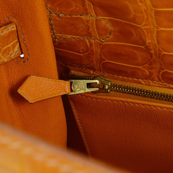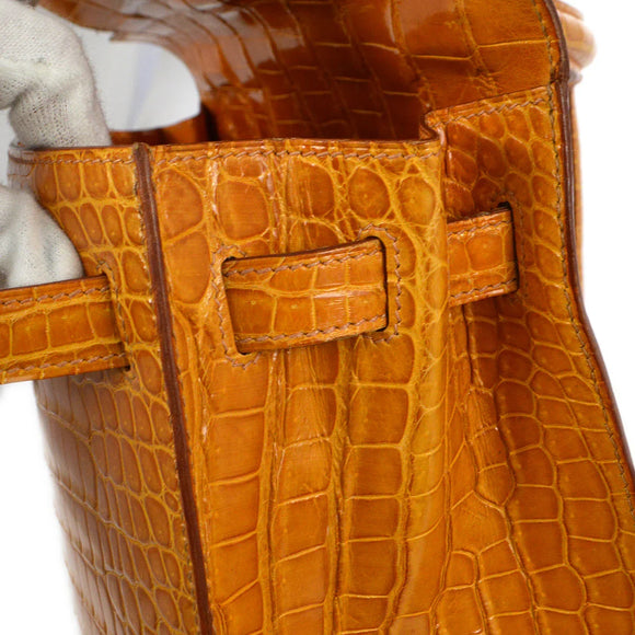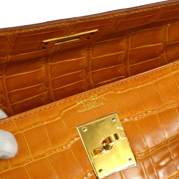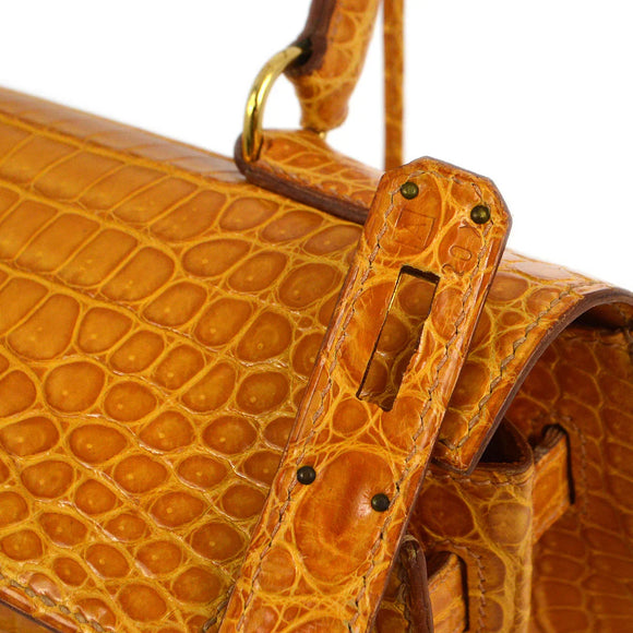 Hermes * 1997 Saffron Porosus Kelly 32 Sellier 2way Shoulder Handbag