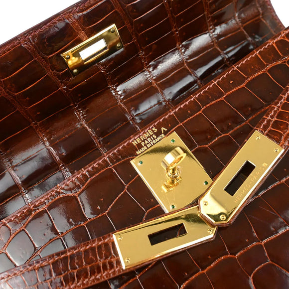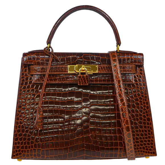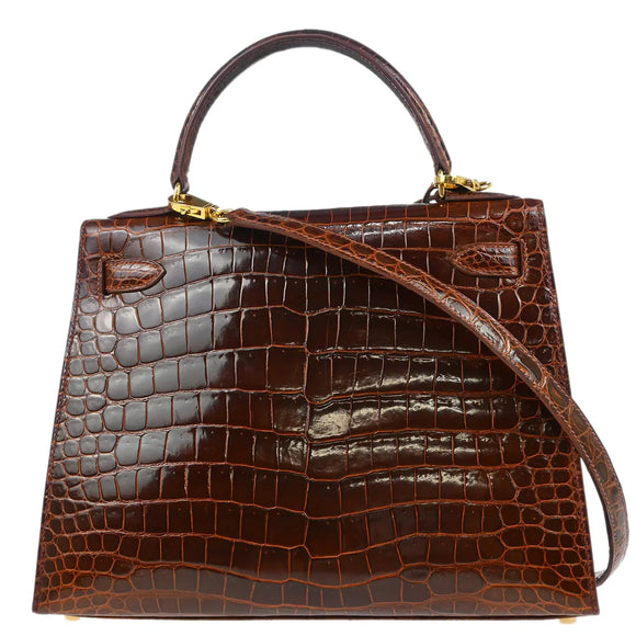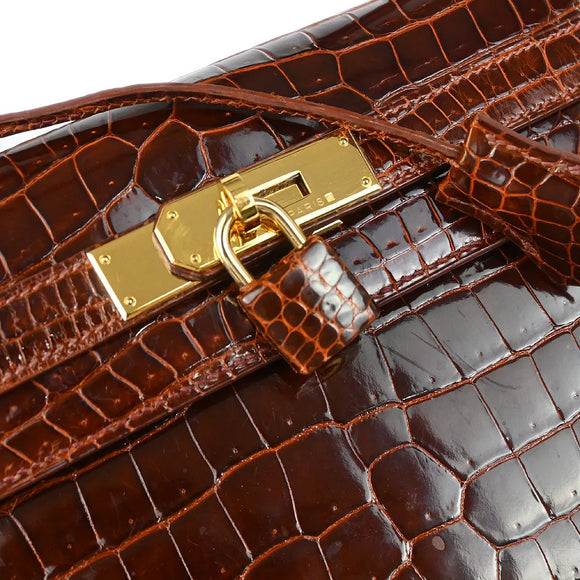 Hermes * 1999 Miel Porosus Crocodile Kelly 28 Sellier 2way Handbag