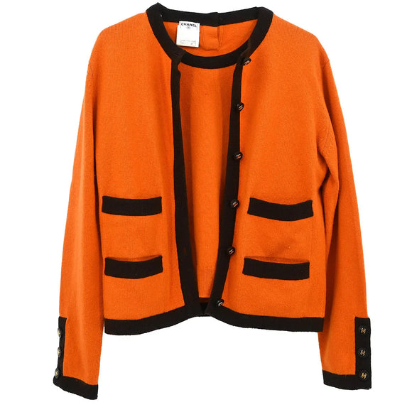 Chanel 1996 Set Cardigan Short Sleeve Top Orange #40