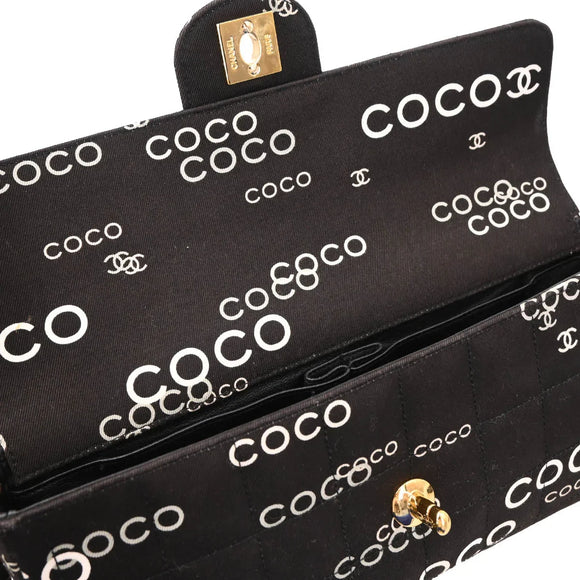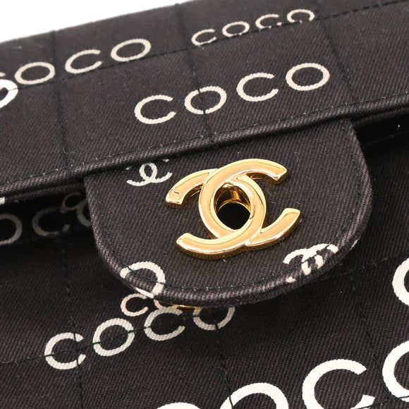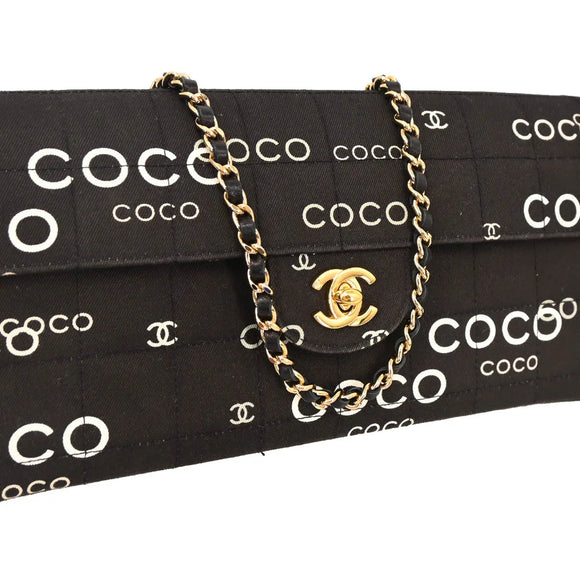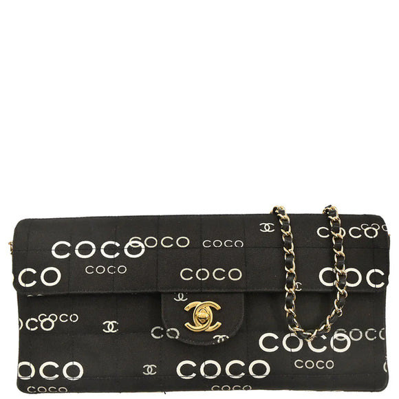 Chanel 2000-2001 Black Canvas COCO East West Choco Bar Shoulder Bag