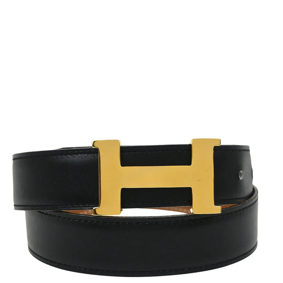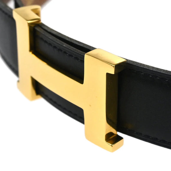 Hermes Black Box Calf Constance Reversible Belt #68 Small Good