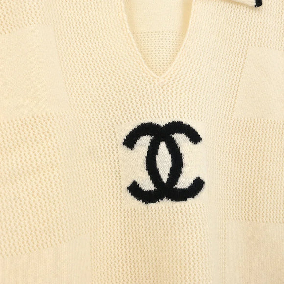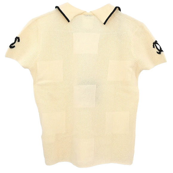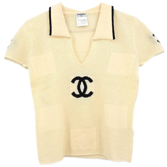 Chanel 2001 Short Sleeve Sweater Knit Top White #38