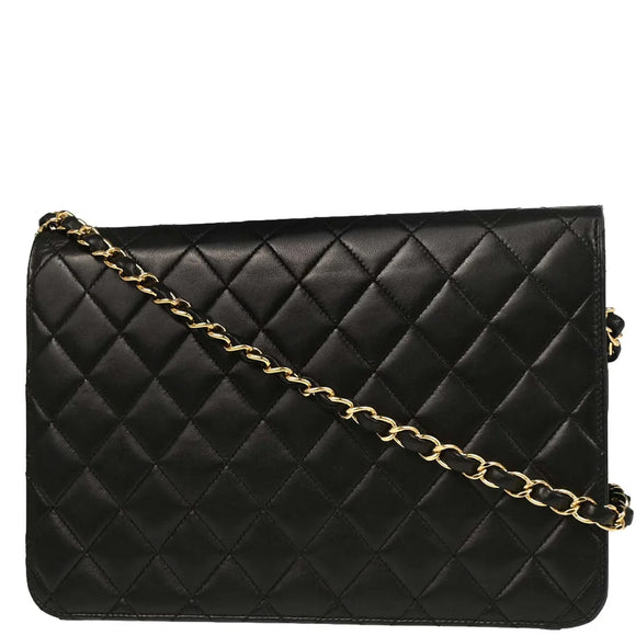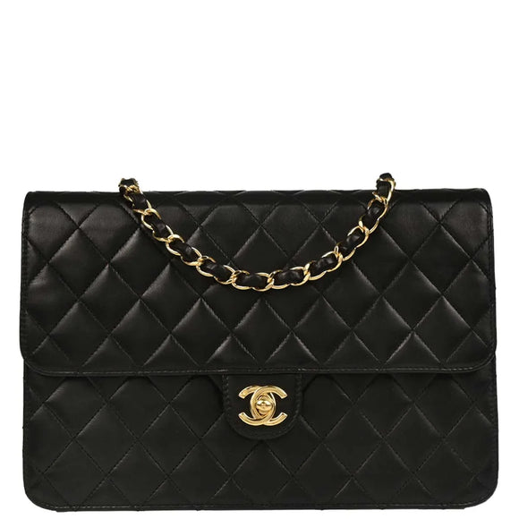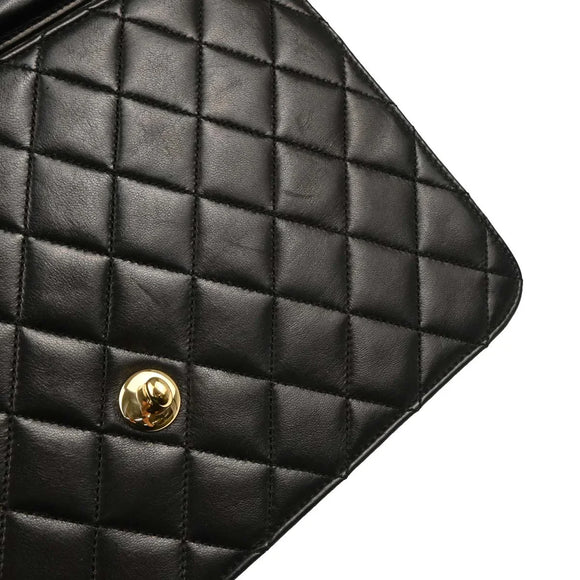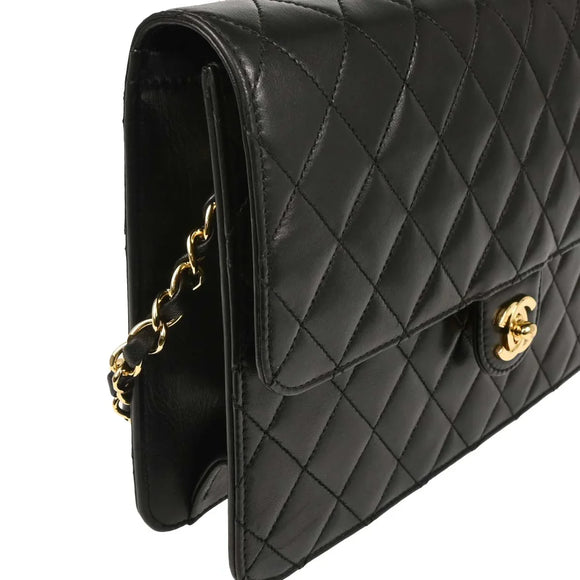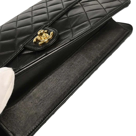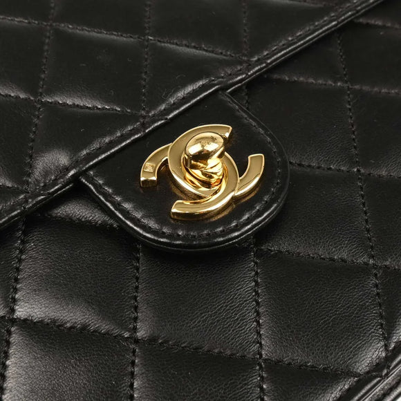 Chanel 2008-2009 Black Lambskin Turnlock Medium Half Flap Shoulder Bag