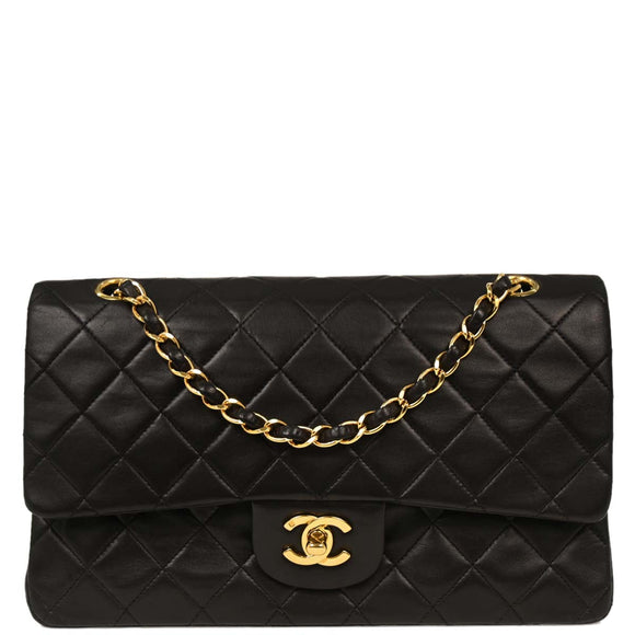 Chanel Black Lambskin Medium Classic Double Flap Shoulder Bag