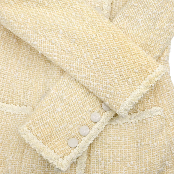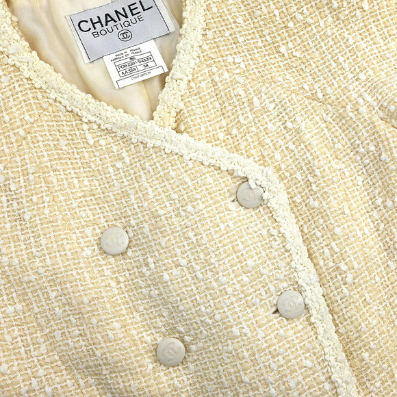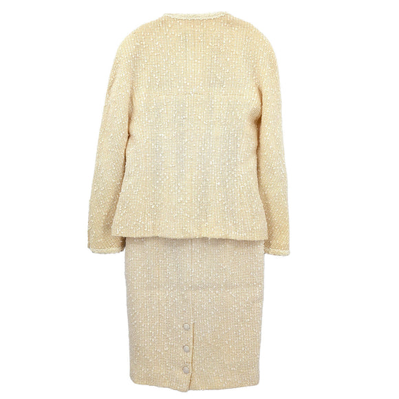Chanel 1996 Setup Suit Collarless Jacket Skirt Off-white #38