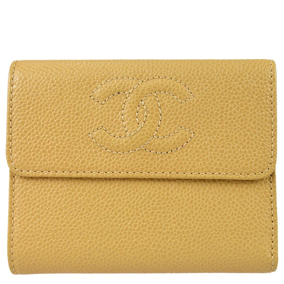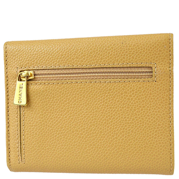 Chanel 2000-2001 Trifold Wallet Beige Caviar