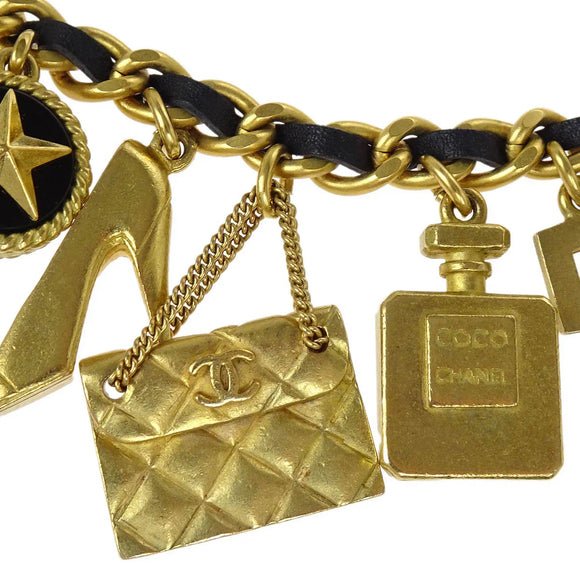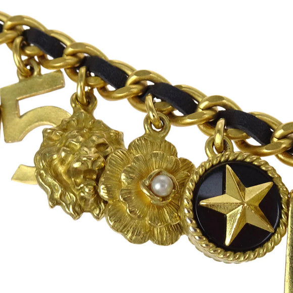 Chanel CC Icon Chain Belt Costume Pearl Gold Black 94A Small Good