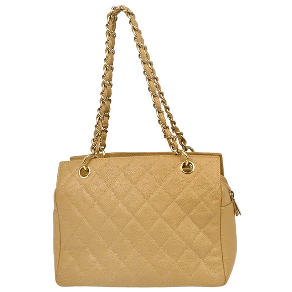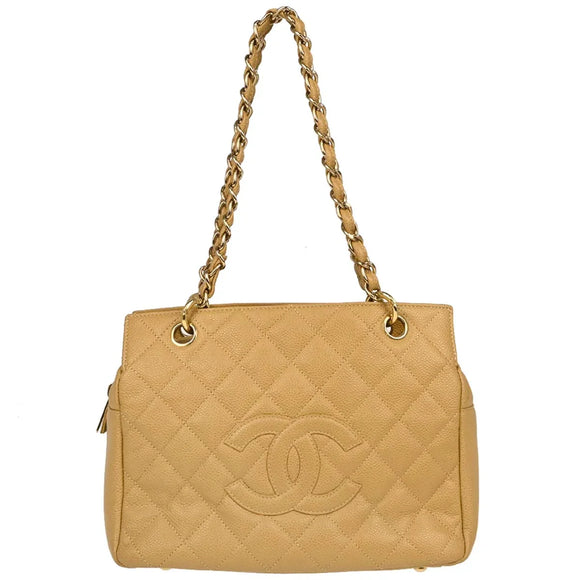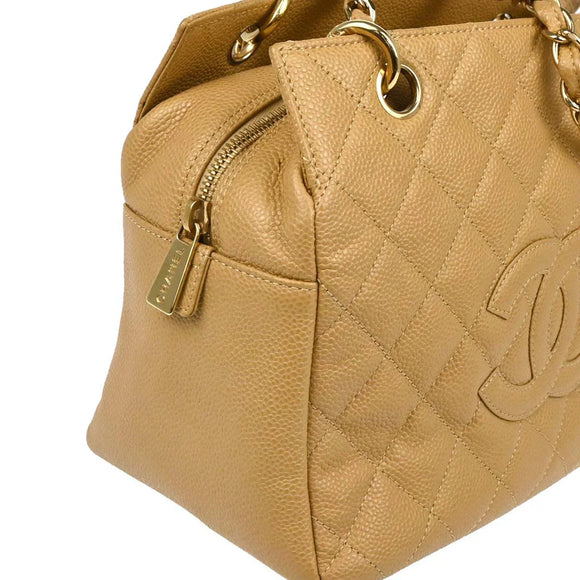 Chanel 2002-2003 Beige Caviar Petite Timeless Tote PTT Chain Handbag
