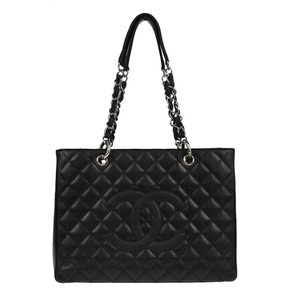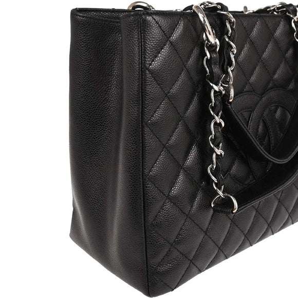 Chanel 2008-2009 Black Caviar Grand Shopping Tote GST Chain Handbag