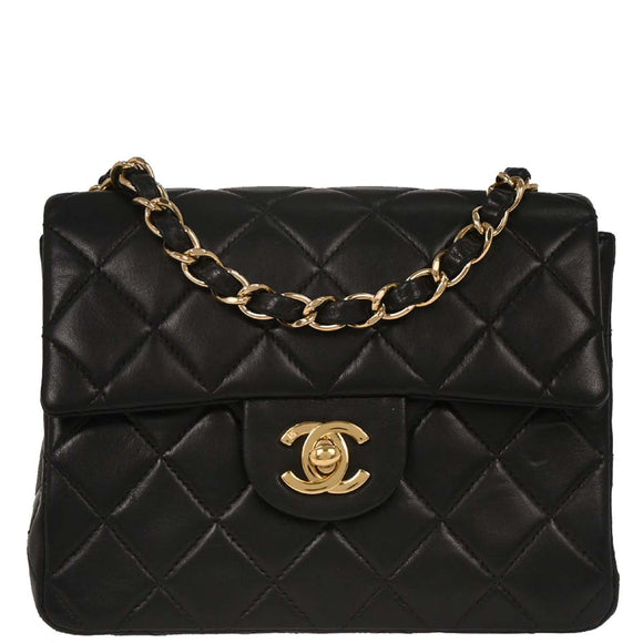 Chanel Black Lambskin Mini Classic Square Flap Shoulder Bag