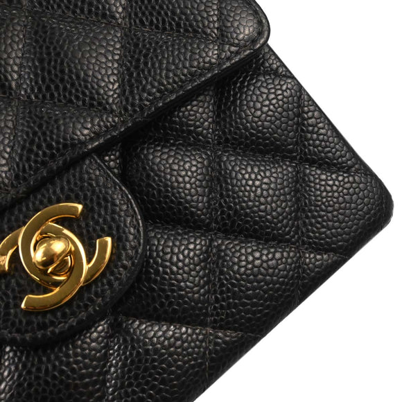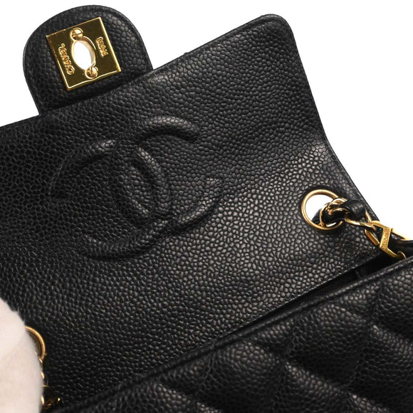 Chanel 2003-2004 Black Caviar Skin Mini Classic Square Flap Bag 17