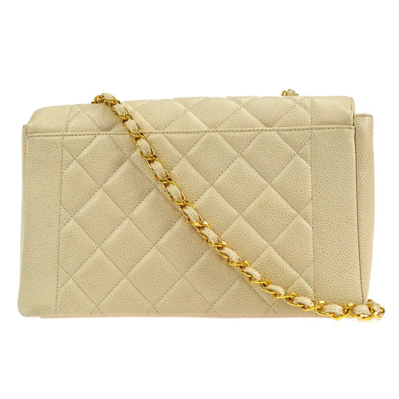 CHANEL * 1996-1997 Tall Diana Flap Medium Ivory Caviar