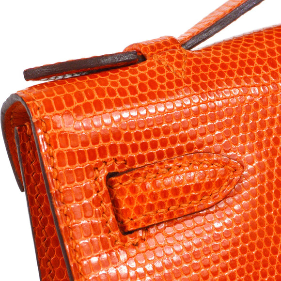 HERMES * 2006 Kelly Pochette Orange Lizard